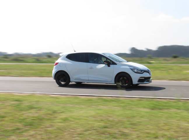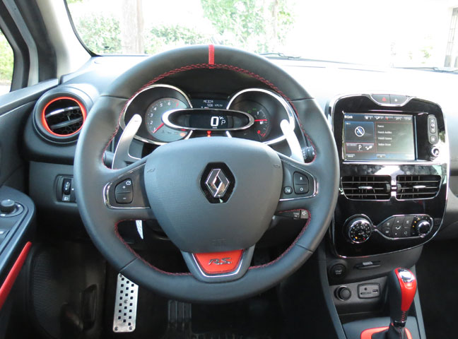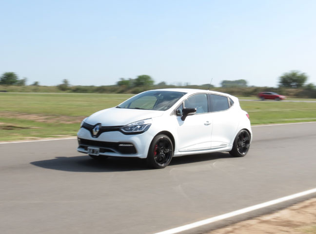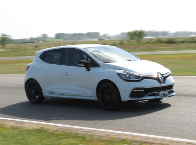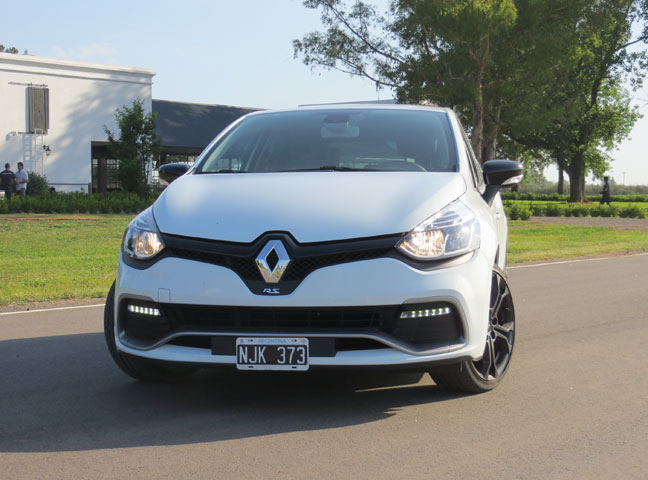 CLIO IV RS. Se trata de la versión más picante de la gama. Este ejemplar fue el mismo que estuvo en el Salón de Buenos Aires y es el único que hay hoy en la Argentina. Posee un motor 1.6 litros, 200 caballos, 4 cilindros en línea y 240 Nm de par. Esta acompañado por una caja automática de seis marchas, doble embriague y levas al volante. Su tracción es delantera. Todo esto hace que tenga una velocidad máxima de 230 kilómetros por hora y acelere de 0 a 100 en 6,7 segundos.