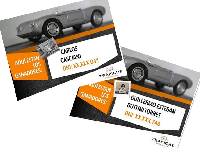 Aunque no sorteamos autos 0km de lujo, si nos dimos el gusto de poner en juego exclusivos modelos de colección: Porsche 550A RS Stradale 1954; Porsche 356 C Spyder 1963; Mercedes Benz 300 SLR coupe 1955 y Jaguar C Type Stradale 1953.