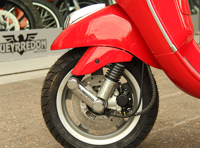 El freno delantero utiliza un disco de 200 mm mientras que el trasero es a tambor de 110 mm. El conjunto completo alcanza los 95 km/h con un consumo promedio entre 2,5 a 3 litros cada 100 km.