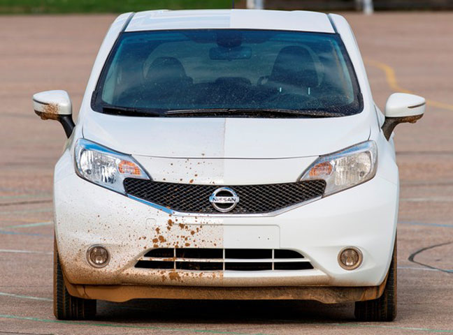 Nissan inició las pruebas de una novedosa tecnología en pintura que repele lodo, lluvia y suciedad cotidiana, lo que significaría que los conductores no deberían lavar nunca más su vehículo. La pintura súper-hidrofóbica y oleofóbica que repele el agua y los aceites, se ha aplicado al nuevo Nissan NOTE para crear el primer vehículo que «se limpia solo» del mundo.