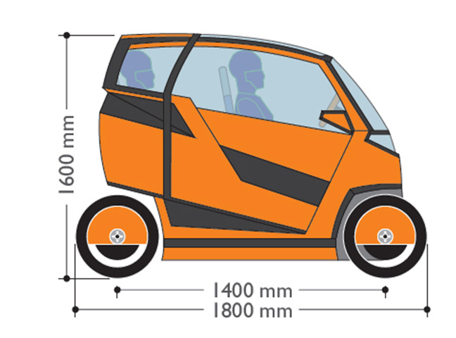 Cada unidad está pensada para transportar a un máximo de tres personas, con la particularidad de no llevar un único motor central, sino que se trata de un propulsor por cada una de las tres ruedas (dos delanteras y una trasera) que funcionan en forma sincronizada.