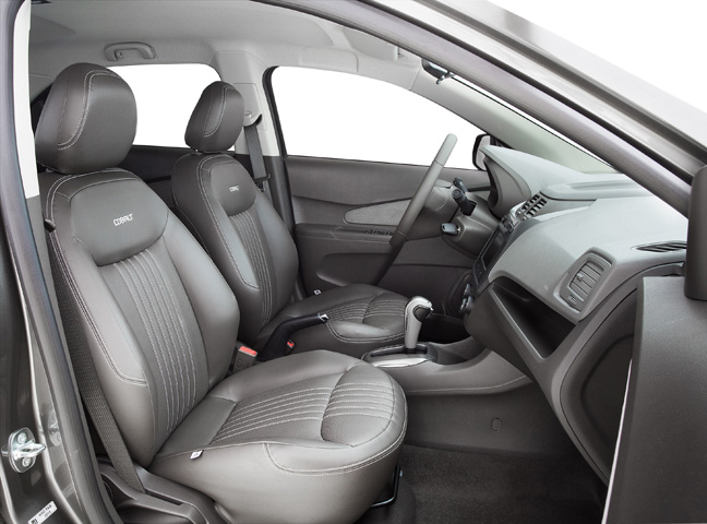 DETALLES. El Cobalt se caracteriza por su gran espacio interior y la capacidad de su baúl que puede almacenar 563 litros que lo transforman en el más amplio de su categoría. Está disponible en los siguientes colores: Blanco Summit, Plata Switchblade, Beige Desert, Azul Macaw y Negro Global.