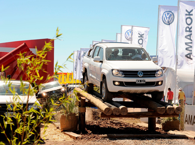 Volkswagen se destaca en Expo Agro con la exhibición de las pick- ups Amarok y Saveiro junto a su línea de camiones. Además el espacio exclusivo de la marca tiene 2400 m2, seccionados entre un sector cubierto de atención al público y una pista off road donde se puede ver y probar la Amarok.