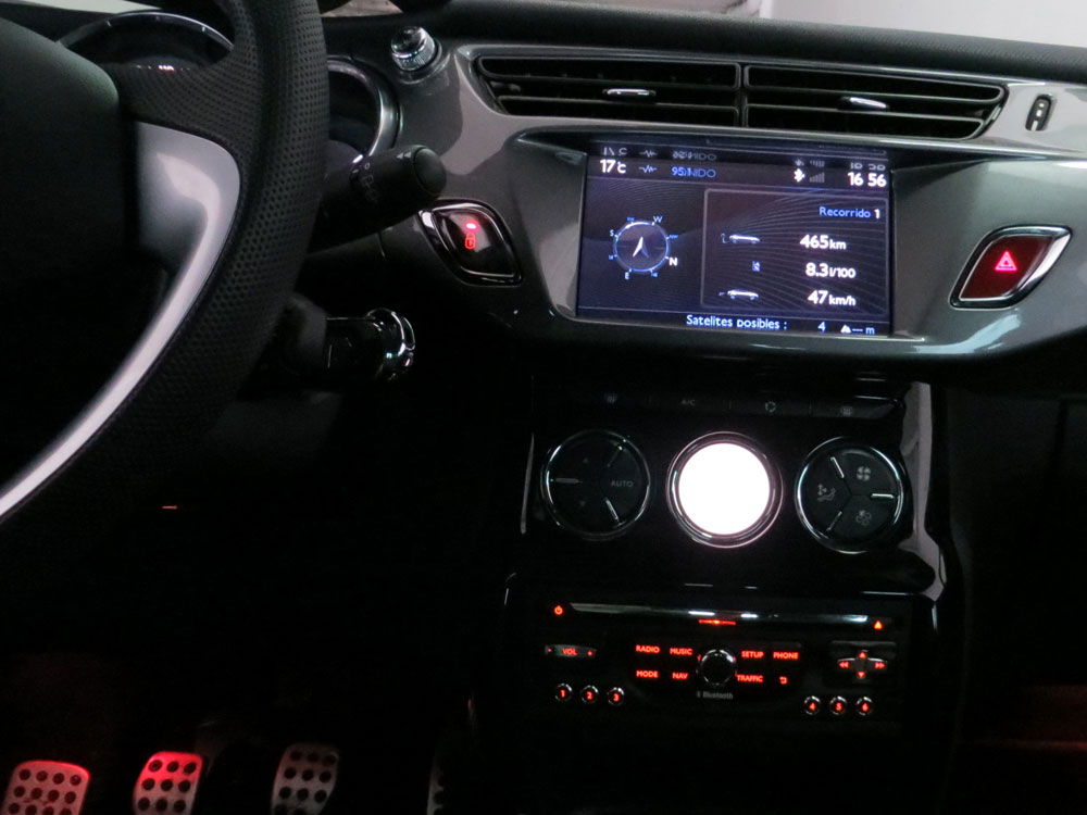 Se destacan las butacas deportivas de cuero calefaccionadas, el climatizador automático, el sistema de navegación satelital con pantalla color de 7 pulgadas, el encendido automático de luces, y sistema de audio Hi-Fi. Una de sus particularidades es el aromatizador incorporado (una de las distinciones de la línea DS3), y el faltante más notorio es el volante multifunción.