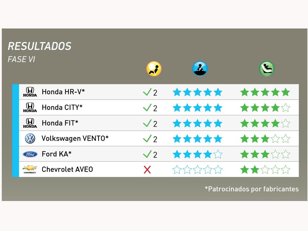 Latin NCAP, luego de sus recientes pruebas a la Hilux 2016 y al Jeep Renegade que llegará en pocos meses a nuestro país, presentó nuevos resultados luego de testear a seis modelos, entre los cuales Honda consiguió excelentes calificaciones, logrando cinco estrellas para HR-V, Fit y City. Además, el organismo en seguridad anunció también que presentará los últimos resultados de la Fase VI en diciembre.