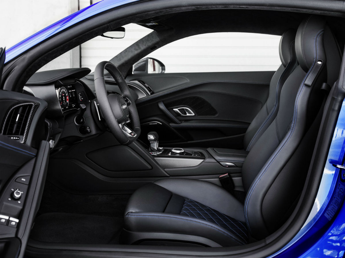 El Audi R8 V10 plus cuenta con dirección dinámica, instrumental configurable Audi Virtual Cockpit, Sistema de Sonido Bang & Olufsen, Navegación MMI plus con MMI touch, llantas con acabado en titanio mate de 20 pulgadas, faros principales Matrix LED con distribución variable de la luz y tecnología Láser y asientos deportivos con regulación eléctrica, entre otras elementos.