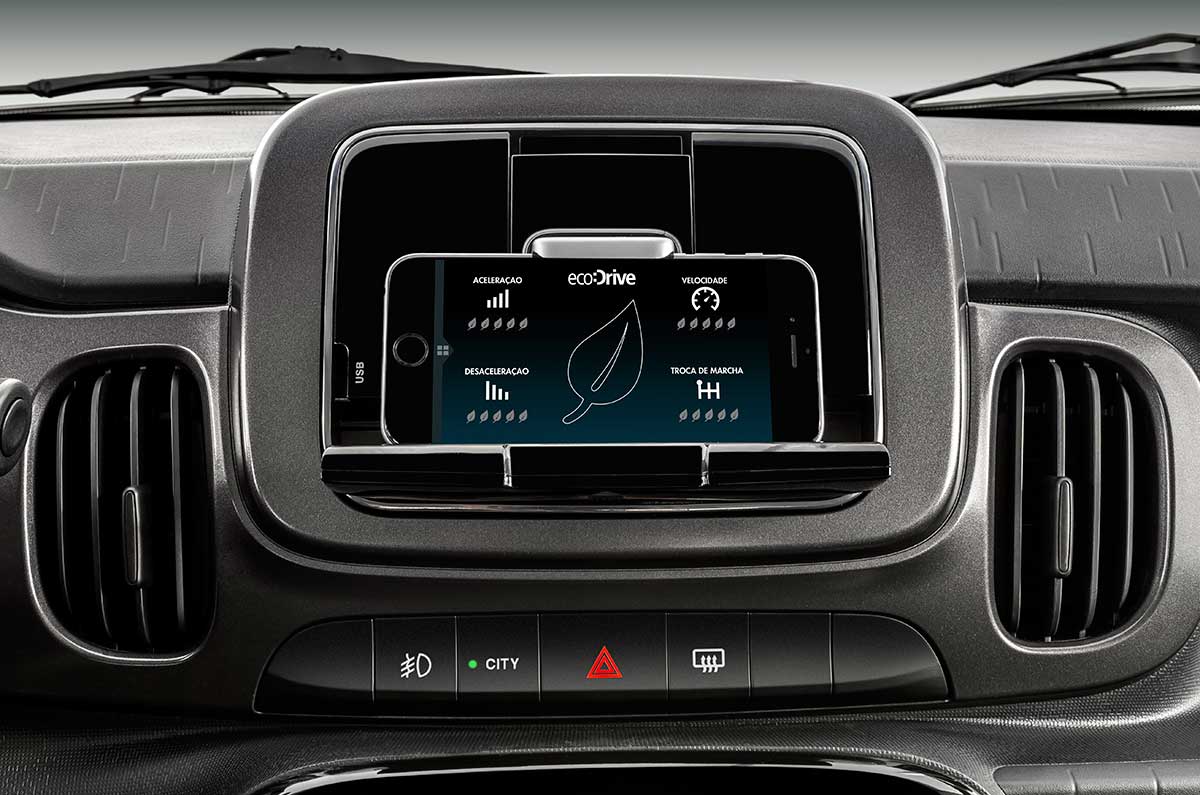 Vale destacar que el conductor podrá colocar su móvil en un soporte retráctil construido especialmente en el panel de instrumentos del Mobi. Esto no es un dato menor si tenemos en cuenta que la gran mayoría de los vehículos hoy no cuentan con un lugar especial para colocar el celular.