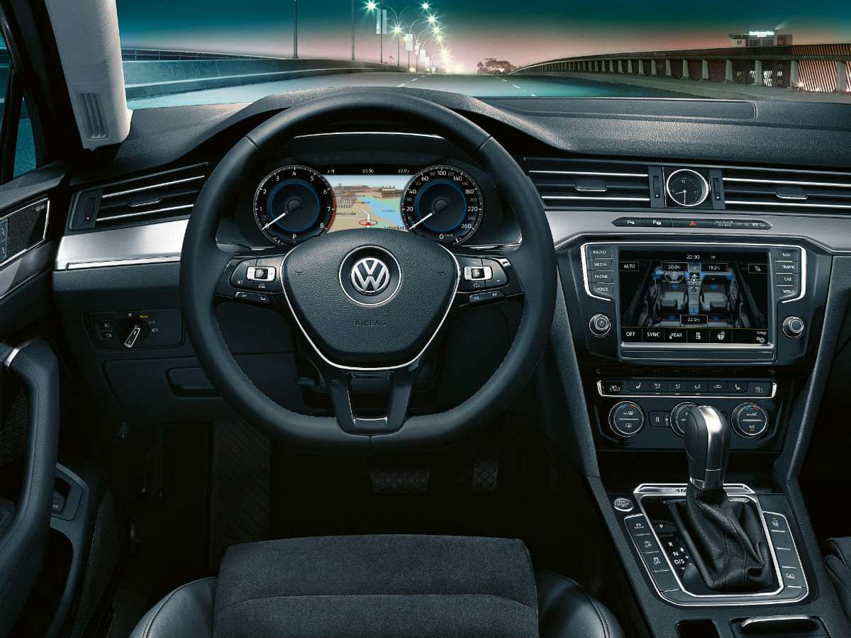En el interior, el nuevo Passat se destaca por ofrecer instrumental completamente digital, además del sistema de navegación con pantalla táctil de 8”, memoria interna de 64 GB y control por voz.