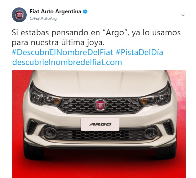 Bajo el lema “Descubrí el nombre del Fiat…”, la iniciativa comenzó con un “teaser” develando la acción e invitando a participar de la misma en redes sociales (Facebook, Instagram y Twitter).