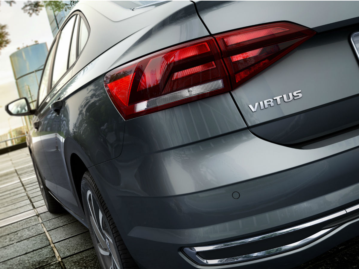 El Virtus muestra un lenguaje visual exclusivo, desarrollado en base a encuestas de clientes y centrado en la regionalización de los productos de Volkswagen. Su formato entrega un diseño dinámico, con líneas rápidas y conectadas, especialmente en los pilares “C” (justo después de las puertas traseras), que le dan al sedán una silueta muy alargada.