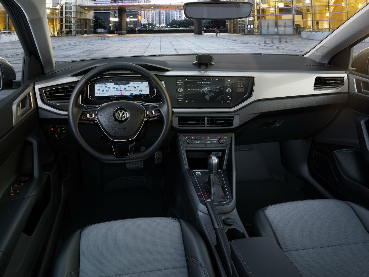 Mediante una orientación horizontal, el tablero Virtus en su versión más completa integra el panel de visualización de información activa totalmente digital y los sistemas de infoentretenimiento, como el denominado Active Info Display. A su vez el sistema Discover Media, con pantalla táctil de 8 pulgadas, cuenta con la apariencia de un teléfono inteligente, fiel a las últimas tecnologías.