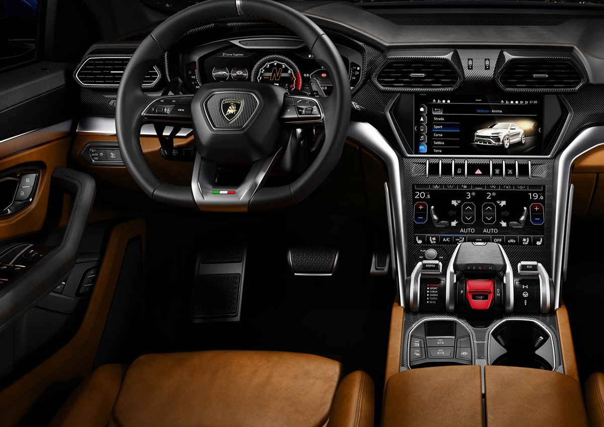 Por dentro, este Lamborghini despliega todo el diseño de punta que lo caracteriza. Desde el cuero de sus asientos hasta la configuración del tablero. Una de las características más llamativas es que Urus cuenta con dos pantallas tácticas, una de ellas es para la navegación, sistema multimedia y otras aplicaciones, en cambio para controlar otras funciones del vehículo, como la del climatizador.