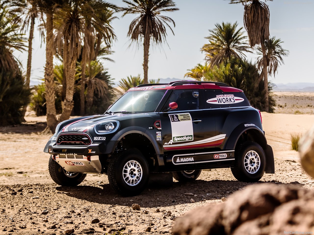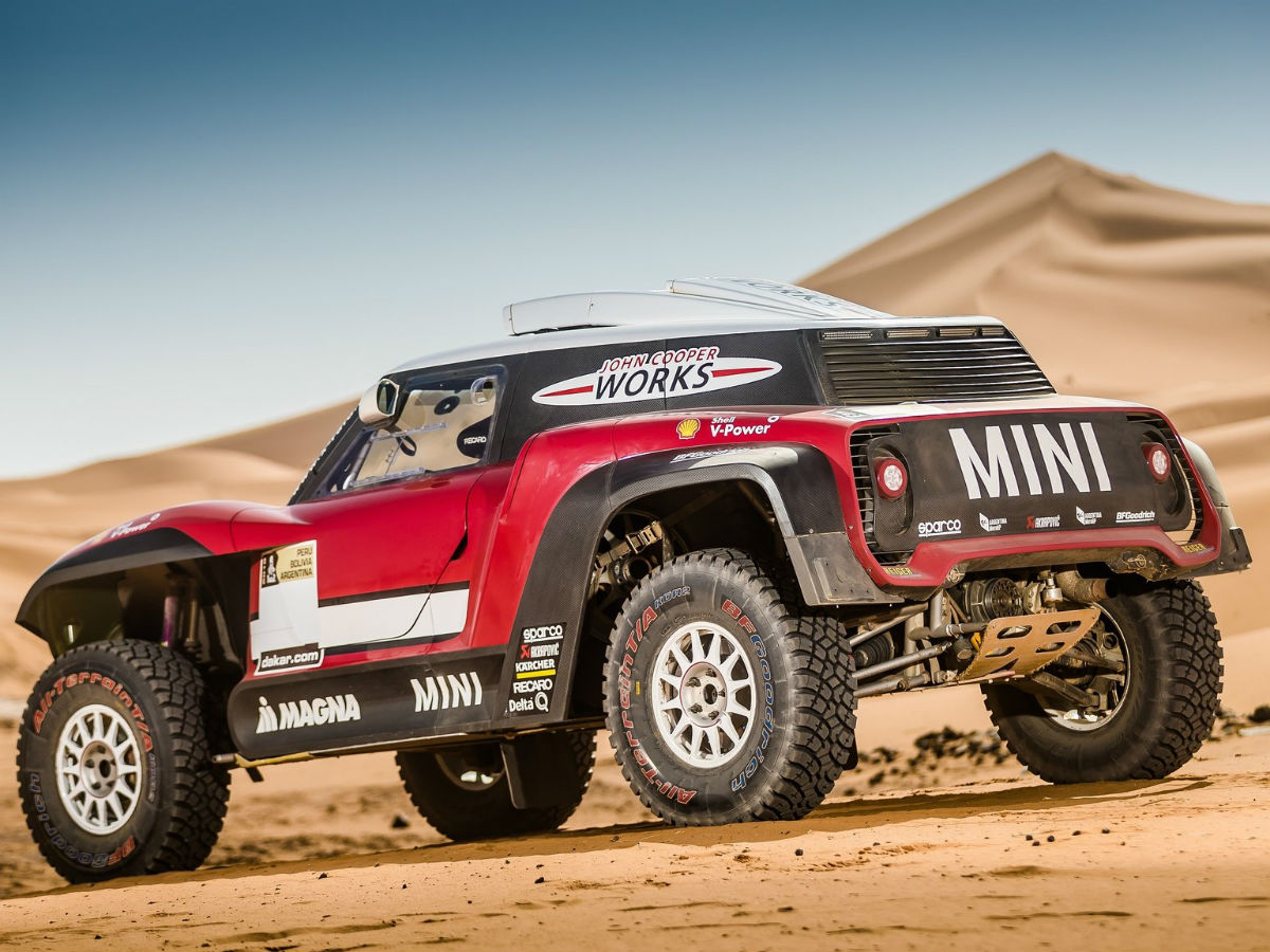 El equipo X-Raid preparó dos tipos de MINI. El habitual continúa siendo el Countryman 4×4, identificado como MINI John Cooper Works Rally. Tiene motor Bi-turbo Diesel de seis cilindros en línea con 3 litros de cilindrada, que genera una potencia de 340 CV.