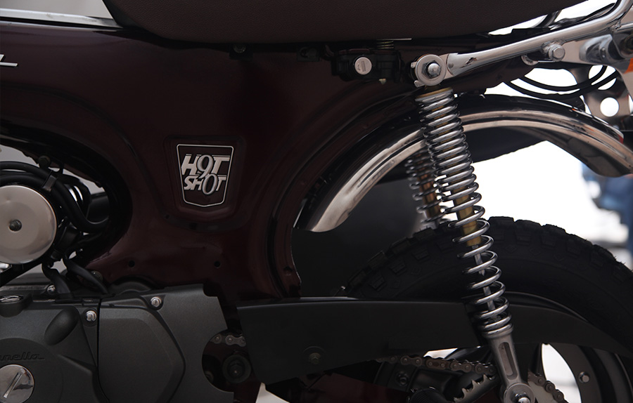 Gracias a su manubrio rebatible y a sus dimensiones, la Hot 90 Shot permite ser transportada en el baúl del auto para llevarla de viaje y disfrutarla solo o en familia. Dentro de las características diferenciales se destacan el nuevo asiento tipo slammer de cuero anti-sliding, su óptica trasera y el guardabarros trasero classic de acero inoxidable.