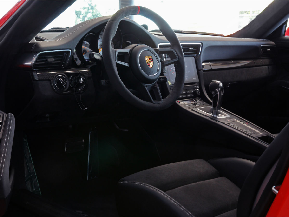 En el habitáculo se hace presente alcántara, no sólo en las partes bajas de la plancha de a bordo, sino también en asientos y volante, ya que esto proporciona un mejor grip del cuerpo con el auto. Las butacas deportivas son otras de las características únicas de este modelo.