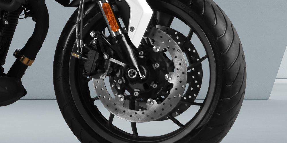 La RZ7i alcanza los estándares más altos de seguridad al incorporar freno de disco trasero y doble freno de disco delantero Nissin (hecho en Japón) de 298mm de diámetro con calipers flotantes de doble pistón. Además, garantiza la máxima capacidad de control y adherencia en curvas gracias a sus cubiertas Pirelli Angel. Este modelo está equipado con suspensión invertida de 41mm de diámetro y llantas de aleación, brindando un confort superior y seguridad para el uso urbano, de gran turismo o conducción deportiva.