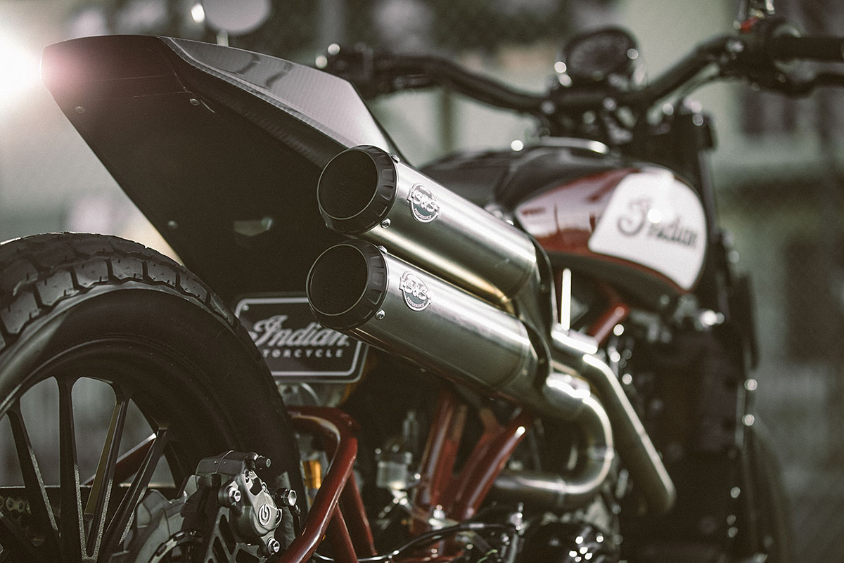La Scout FTR1200 Custom está armada con un propulsor de 1.133 cc V-Twin en un chasis de tubular de acero al cromo-molibdeno de alta rigidez, igual al que emplean motocicletas de competición. En cuanto a la potencia esta Indian erogó 100CV y 103,85 Nm a 5.270 rpm.