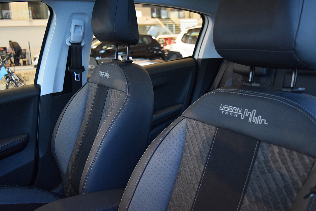 Además cuenta tapizados combinados en cuero ecológico y tela, junto a cubre alfombras con bordado “Urban Tech”. El vehículo también ostenta adhesivos sobre los guardabarros delanteros.