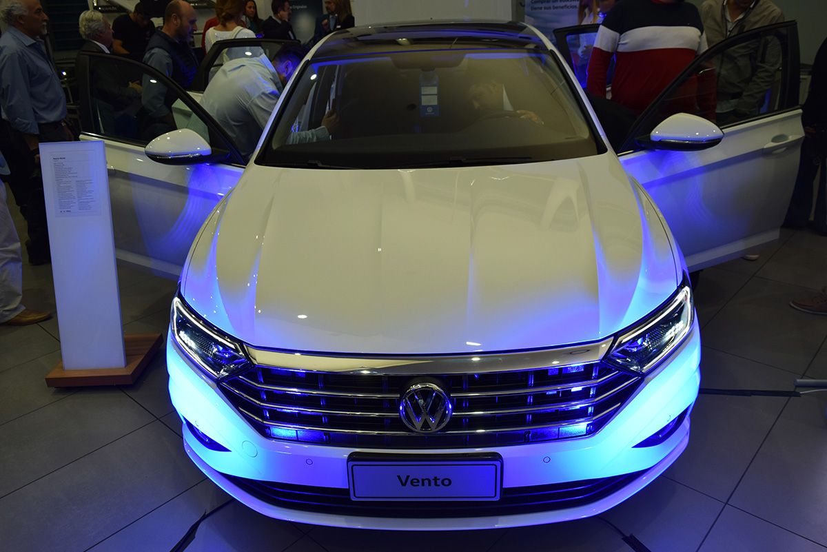 Terminada la disertación, fue momento para quitar el velo y que los cientos de presentes conocieran en vivo la tercera generación del Vento, Vale destacar que este sedán está realizado sobre la plataforma MQB del grupo alemán, la misma que utiliza el Golf de séptima generación, que se comercializa en nuestro país desde el año 2014. Vento se presenta en dos versiones: Comfortline y Highline.