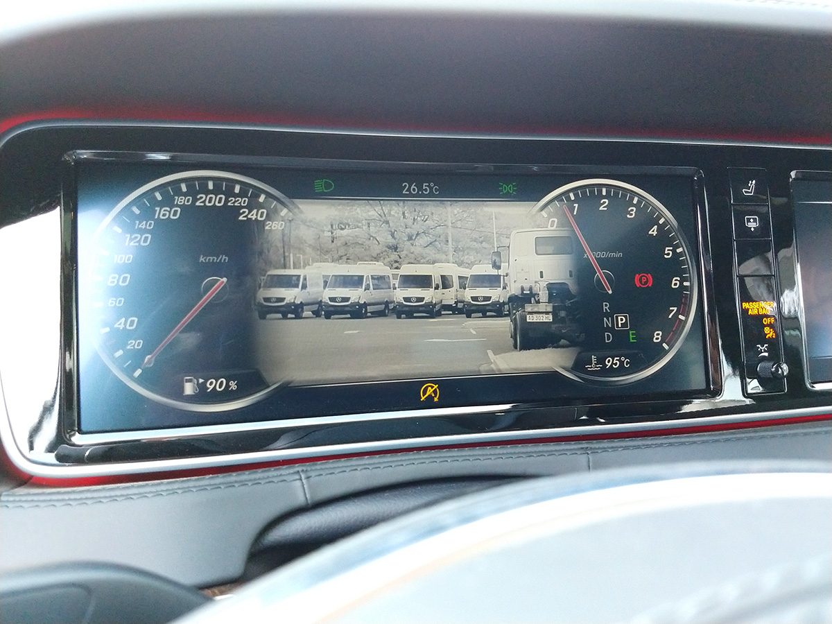La pantalla ofrece una experiencia única, en ella podremos controlar las cámaras del vehículo, las cuales conforman una visión de 360°. Un detalle que resalta, es que la cámara frontal está acompañada de un sensor infrarrojo, el cual permitirá al conductor y acompañante tener visión nocturna y hasta poder ver en condiciones climáticas difíciles como niebla.