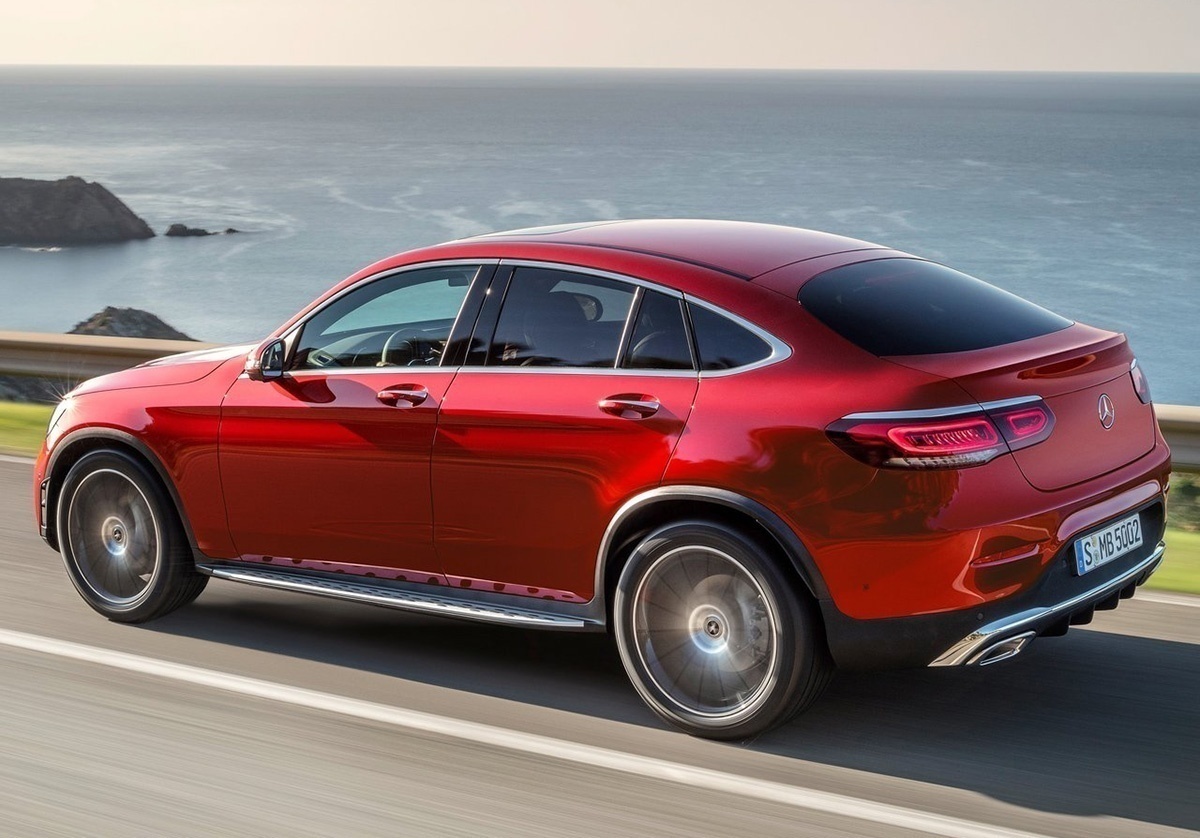 El Mercedes-Benz GLC Coupé se caracteriza por su aspecto dinámico y líneas elegantes. Las características todoterreno incluyen el extremo delantero dominante, formas poderosas y detalles cromados de ajuste estándar como las guardas de apoyo delanteras y traseras. Su carácter coupé brilla a través de la silueta en cuclillas con la línea del techo caído y la ventana trasera redondeada. Los aspectos más destacados en la parte delantera incluyen la poderosa rejilla del radiador de diamante contorneada con estrella integrada y rejilla única típica de un coupé, complementada por las distintivas tomas de aire y los nuevos contornos de los faros LED de alto rendimiento de ajuste estándar.