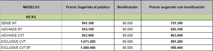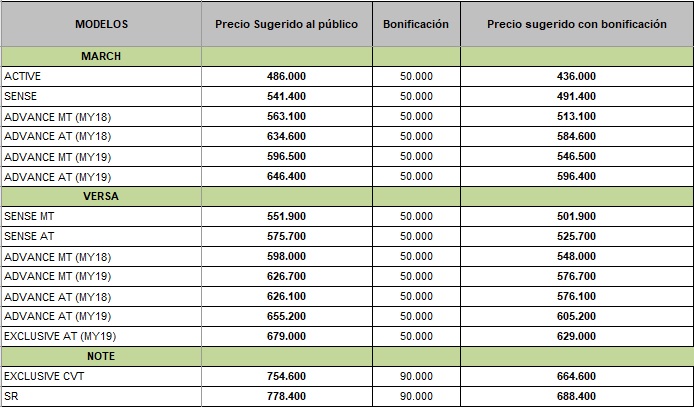 Nissan confeccionó su lista de modelos, los cuales van desde March hasta la Kicks. Vale recordar que estas bonificaciones estarán disponibles hasta el 30 de junio en toda la red de ventas de la marca japonesa del país.