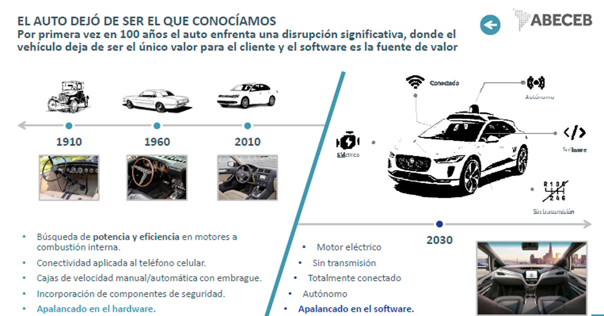 El cambio principal radica en que el comprador dejaría paulatinamente de pensar en las características técnicas del auto que busque comprar. La nueva fuente de valor será la conectividad que pueda ofrecerle un automóvil.