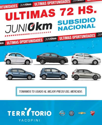 Apenas trascendió la noticia del subsidio nacional Junio 0KM, Territorio Yacopini solicitó más unidades a las fábricas de Volkswagen, Chevrolet y Nissan para reforzar su oferta.