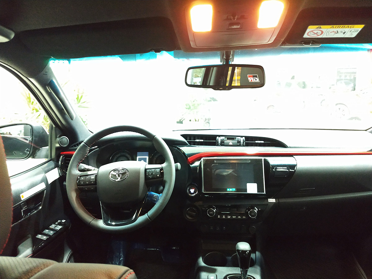 Vale destacar, que la Hilux GR-S se basa en el completo equipamiento de la versión SRX, destacándose los faros delanteros de LED, navegador incorporado en el sistema multimedia con pantalla táctil de 7”, el sistema de Ingreso Inteligente (Smart Entry System), que permite desbloquear las puertas simplemente apretando el botón de la manija de apertura de la puerta teniendo la llave inteligente en el bolsillo.