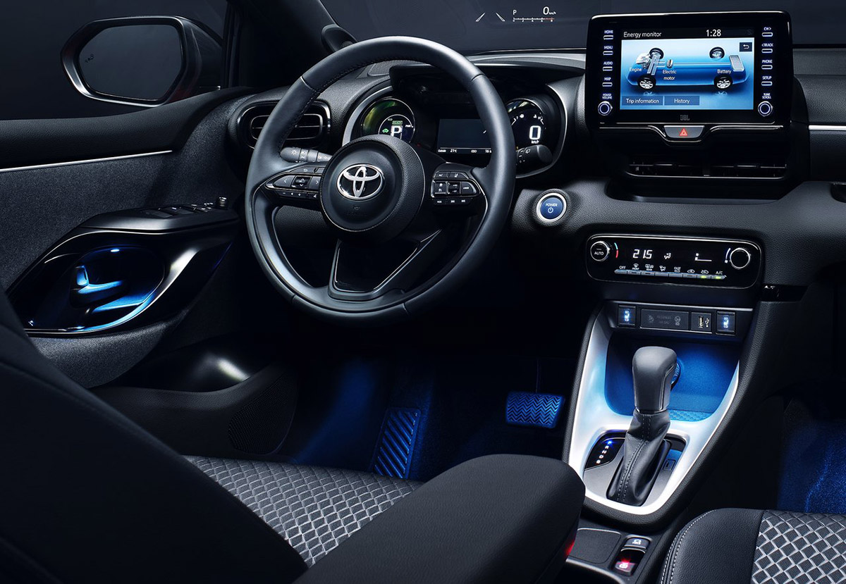En el interior la marca continúa con el concepto de «menos es más», creando un área abierta y espaciosa para el conductor y el pasajero delantero. Los materiales de alta calidad incluyen un innovador acabado de fieltro para los paneles de las puertas y, por primera vez en un Yaris, un panel de instrumentos táctil para brindar un ambiente más cálido en la cabina.