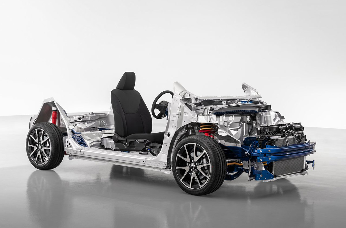 La plataforma GA-B permitió una reducción de 40 mm en la altura total, pero el espacio para la cabeza no se ha visto comprometido ya que el conductor y los pasajeros se sientan más bajos. La altura reducida del capó contribuye a una mejor vista delantera para el conductor. Agregar 50 mm al ancho del automóvil genera más espacio en la parte delantera y trasera, mientras que los anchos de vía delanteros y traseros más anchos se suman al aspecto más bajo y ancho del nuevo Toyota Yaris.