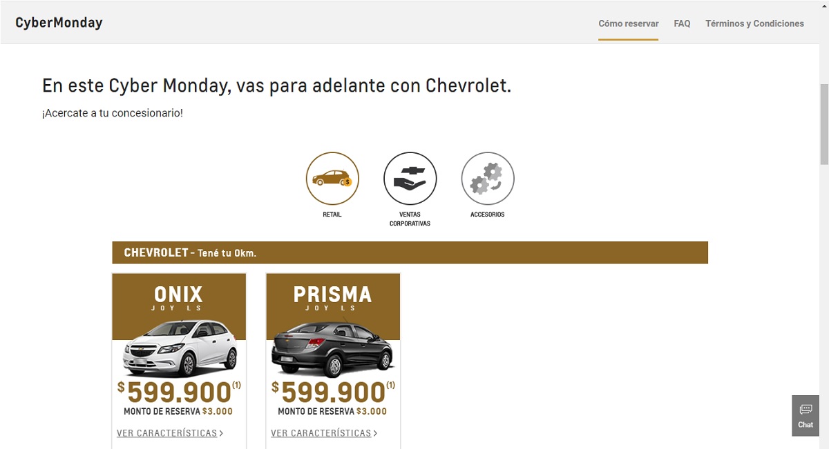 Chevrolet, por ejemplo, publicó un Onix Joy LS con motor 1.4 con una reserva de $3.000 y un precio especial para el hatch de $599.900.