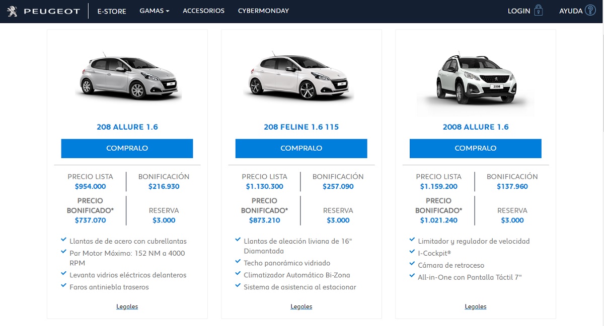 Los vehículos nuevos también tienen su espacio, marcas como Chevrolet y Peugeot publicaron algunos de sus autos más importantes con descuentos.