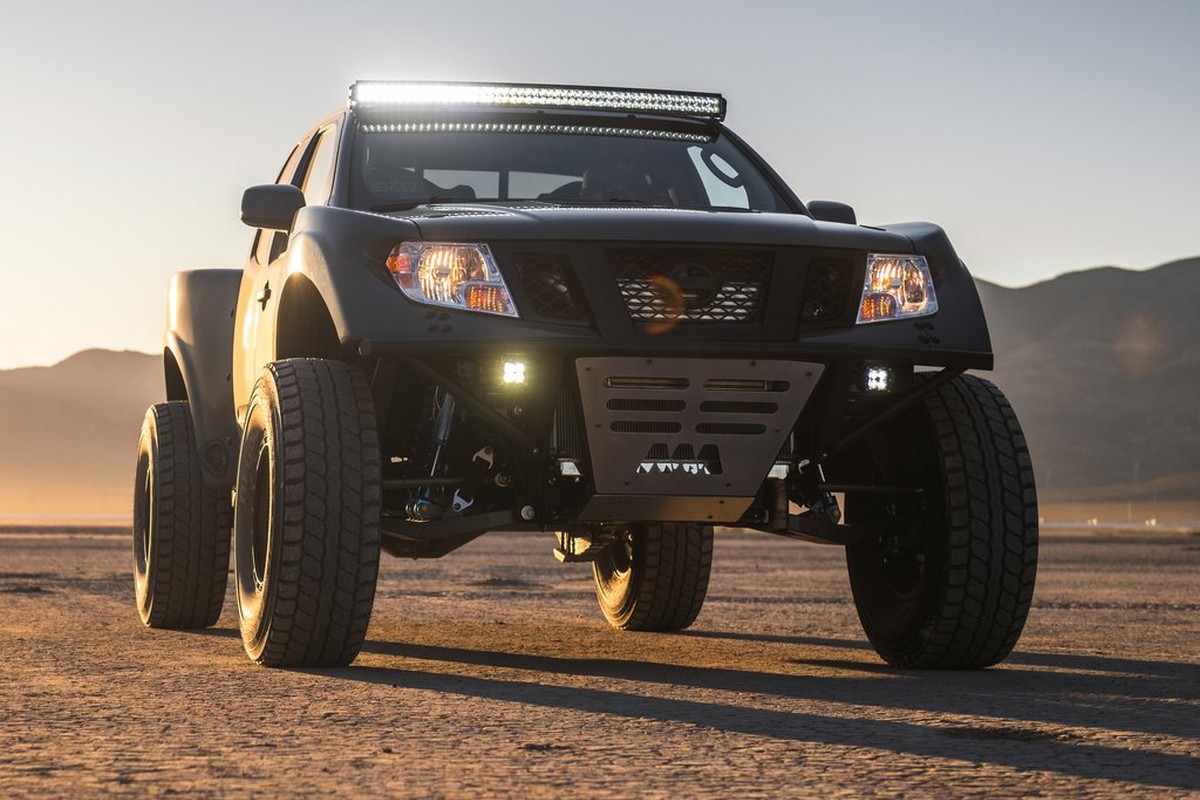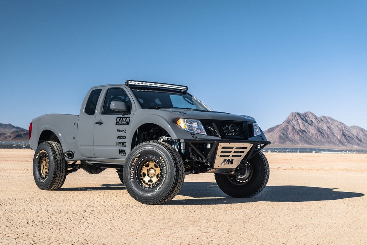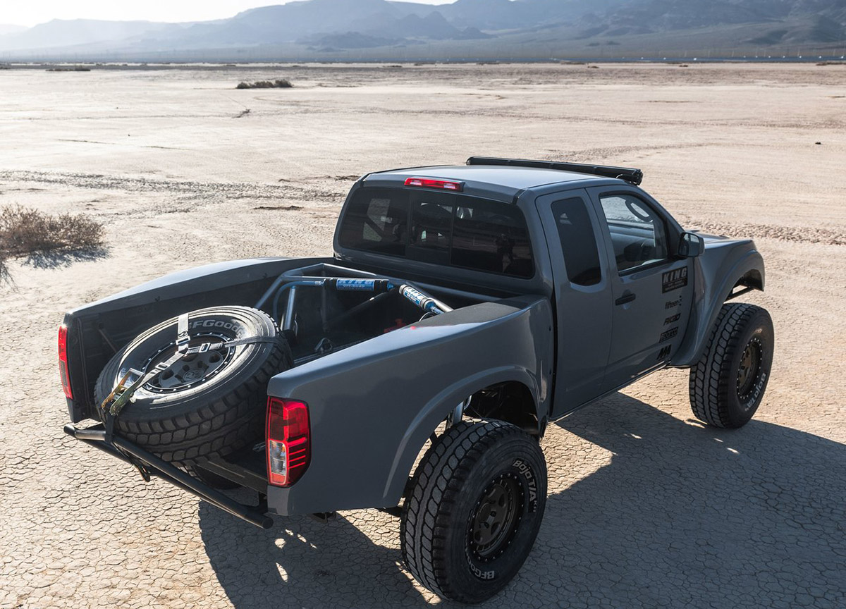 Esta Nissan Frontier Desert Runner se monta sobre ruedas Fifteen52 TurboMac HD y llantas BFGoodrich Baja T / A de 37 pulgadas. Los aros de choque, la caja del motor y la caja de la cama fueron fabricados por MA Motorsports.