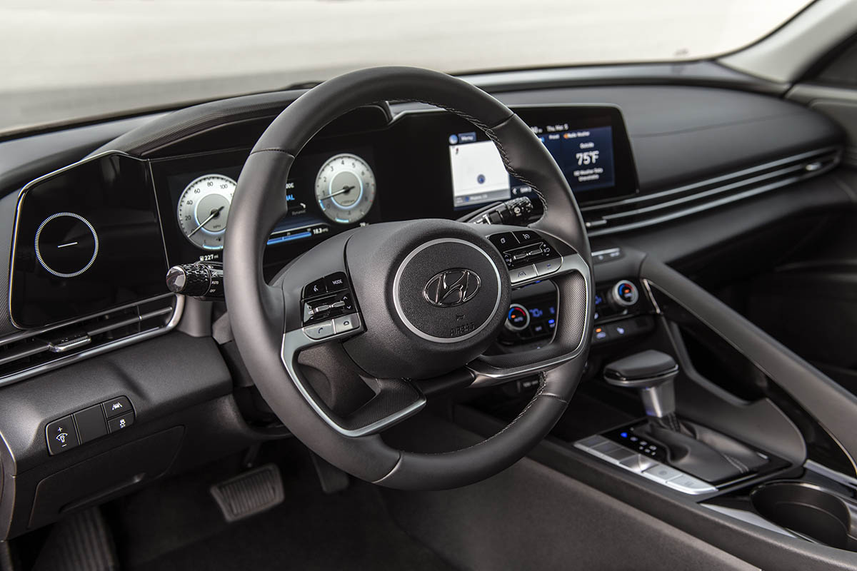 La interfase para el usuario en la pantalla del Elantra de Hyundai permite dejar en casa el cable del teléfono celular. Esto se debe a que los sistemas Wireless Android Auto y Apple CarPlay están disponibles aquí como una primicia en el segmento en cuanto a componentes, permitiendo que uno pueda dejar el teléfono en un bolsillo o en la cartera.