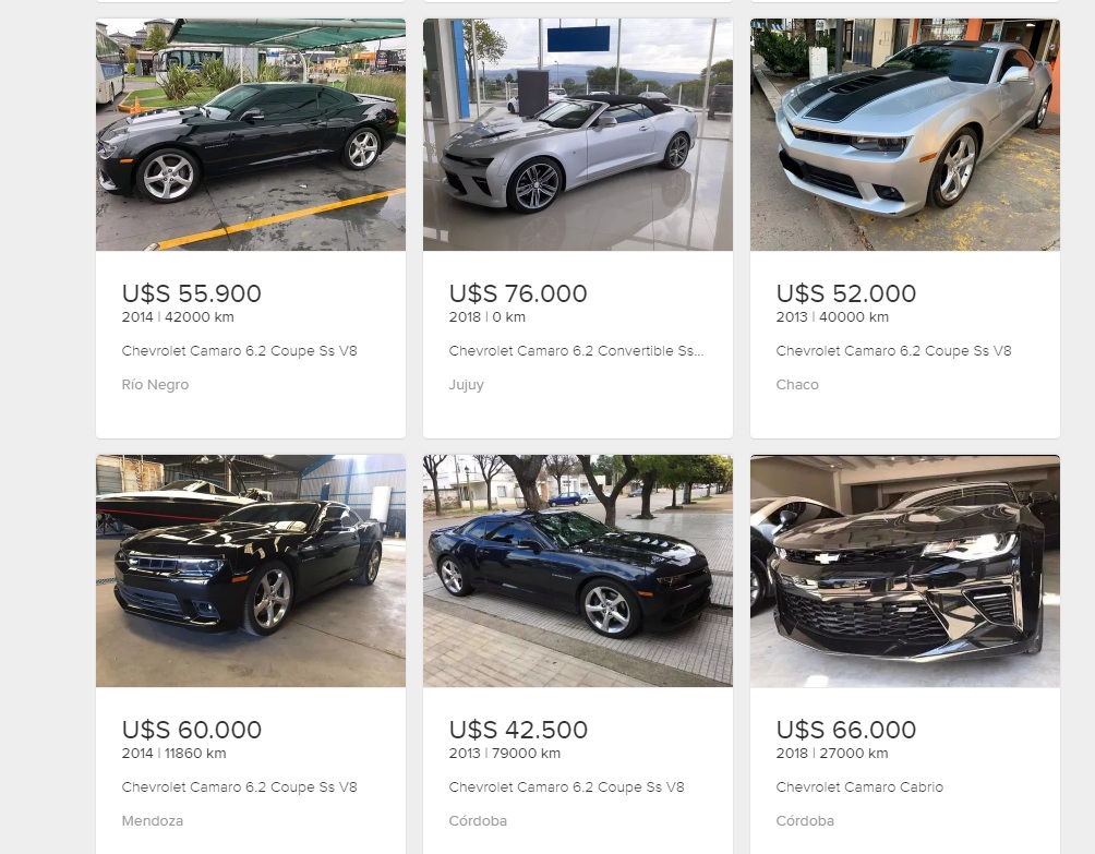 Nuestra búsqueda del día especializó en los clásicos muscle cars americanos, dos productos muy mirados e icónicos, tanto de las marcas Chevrolet como Ford. Se trata de los Camaro y Mustang, que en Argentina no abundan. Los ejemplares más antiguos han sido importados generalmente de manera particular, mientras que de manera oficial sólo se ofrecieron desde los últimos años. ¿Cuánto cuestan actualmente?