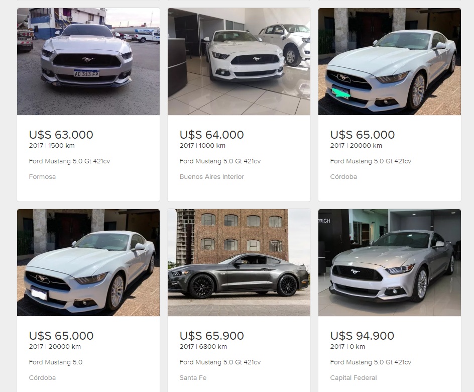 Oficialmente el Mustang se comercializó en Argentina a inicios de la década del ochenta. Esas unidades, con motor de cuatro cilindros, son mucho más económicas, pero muy poco valoradas en el mundo del modelo. El precio del Mustang sin embargo comienza a encarecerse en versiones de la década del noventa, que en nuestro mercado suelen encontrarse alguna que otra unidad, con valores desde 30 mil dólares.