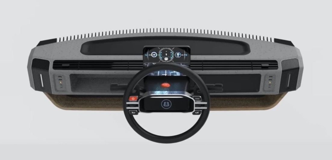 Su condición modular no se queda solo para el exterior, ya que en el interior de este vehículo eléctrico, el volante puede ser deslizado para cambiar la conducción de izquierda a derecha o viceversa. Esto es gracias a que su dirección, al igual que los pedales, utilizan un sistema de transmisión por cable, lo que significa que están conectados electrónicamente en vez de estar mecánicamente unidos a las ruedas delanteras.