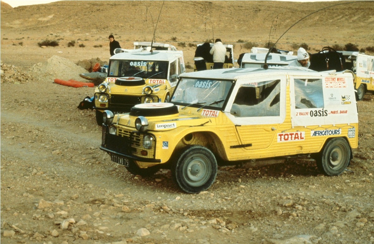 Tan a gusto en cualquier playa como en el centro de París, del Méhari se fabricaron unas 150.000 unidades durante casi 20 años: entre 1968 y 1987, incluyendo las versiones 4×4 que sirvieron en el ejército francés y se utilizaron como “ambulancia rápida” en el París-Dakar de 1980, donde demostraron su increíble eficacia para meterse en las dunas sin atascarse en ningún momento.
