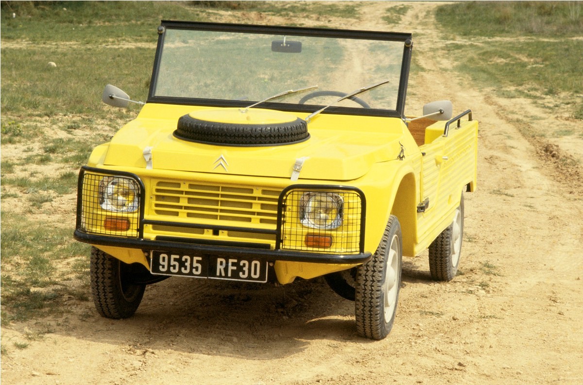 Inspirado en las personas, este modelo adelantado a su tiempo sedujo a todos, agricultores, recolectores, amantes del aire libre, tanto en la playa como en la montaña. Veloz gracias a su ligereza y capaz de llegar a los lugares más insospechados, su nombre “Méhari” se eligió derivado de una raza de camellos de carreras, particularmente robustos y resistentes. Y si el 2CV fue definido por algunos como un “caracol de latón” el Méhari fue llamado, de manera simpática, “caracol de plástico”.