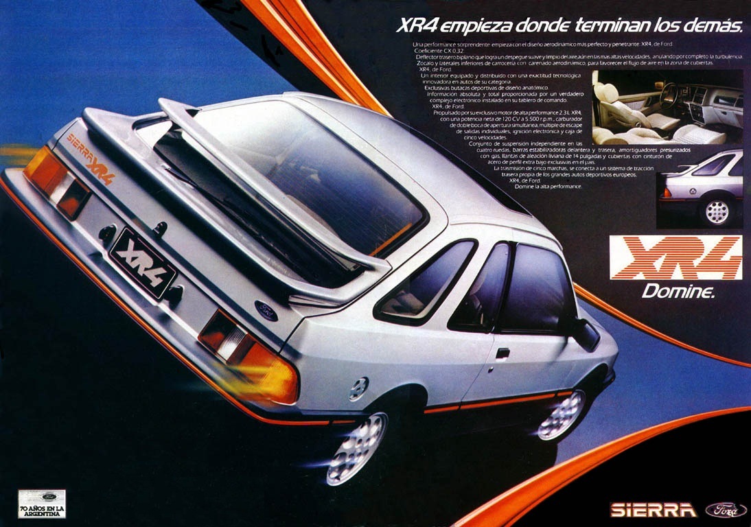 En 1984 Ford comenzó a producir en su planta de General Pacheco al Ford Sierra, un automóvil revolucionario que introdujo muchas tecnologías, con el objetivo de competir frente a los Renault 18 y Peugeot 505, como máximos exponentes del mercado local. A fines de ese año, la marca del óvalo amplió a su vez la gama, con la versión deportiva del Sierra. Denominada XR4, la coupé de Ford cautivó a los entusiastas de aquel momento.
