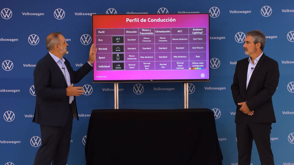 Confort + Seguridad. Finalmente a lo que mayor espacio de tiempo dedicaron Jorge García y en la presentación fue a la descripción de una variedad de elementos de tecnología de confort y seguridad, entre los cuales se cuentan desde el sistema start / stop, control de velocidad crucero adaptativo, sistema “front Assist” y frenado autónomo de emergencia con detección de peatón, alerta de tráfico cruzado, freno de estacionamiento electromecánico, función de frenado en manobras de estacionamiento e indicador de pérdida de presión de los neumáticos y “Post collision break”, entre otras.