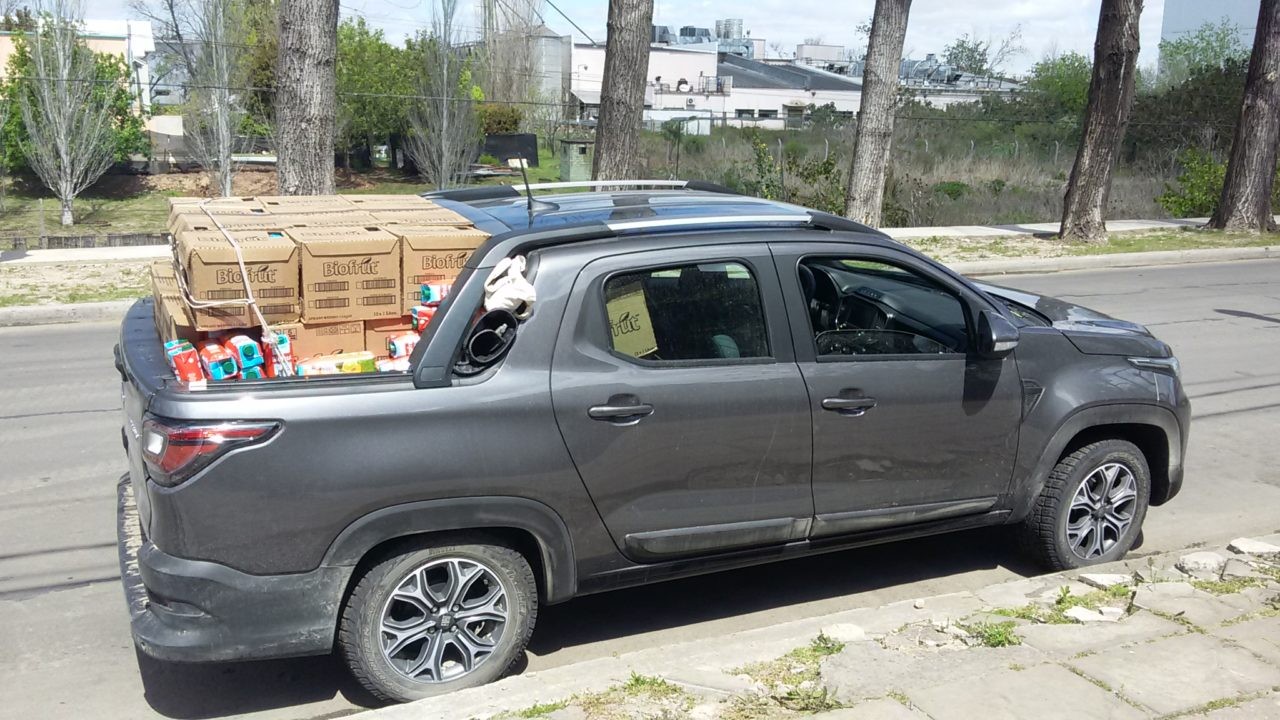 También aprovechamos al máximo la capacidad de carga para trasladar un cargamento de cajas de jugos desde San Fernando hasta Ezeiza, para una donación. Si bien tuvimos que desarmar las cajas para aprovechar el espacio, entró prácticamente un pallet completo, con un peso superior a los 600 kg.