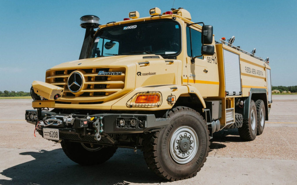 La Fuerza Aérea Argentina sumó equipo de lujo, capaz de resistir todo, se trata de tres camiones Mercedes-Benz Zetros 2733. Estas unidades fueron concebidas para sortear caminos dificultosos y trabajar en condiciones extremas, como extinción de incendios forestales, incendios aeroportuarios y tareas de rescate. Vale destacar que estas bestia emplean un motor OM 926 LA, con tracción 6×6.