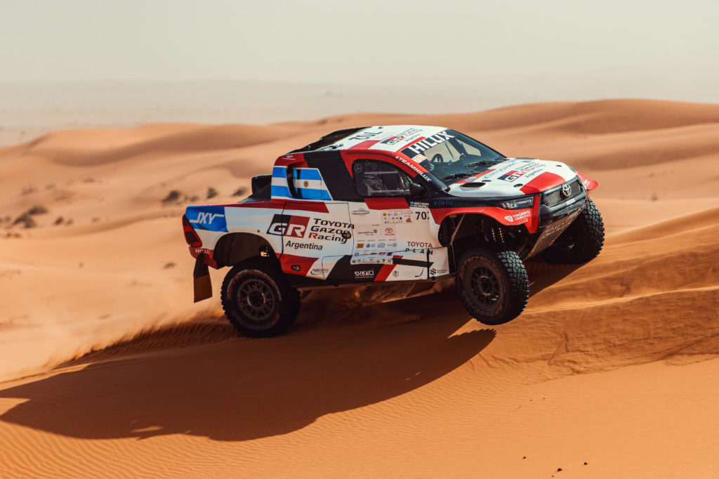 “La verdad estoy contento de estar un año más y a punto de afrontar esta gran carrera. Han habido grandes cambios. Uno está en la Hilux. La camioneta Overdrive presenta nuevas especificaciones técnicas, con neumáticos más grandes, un poco más de recorrido de suspensión y más de trocha. Tuvimos la suerte de probarla en Hail, que es donde vamos a estar tres días en este Dakar 2022”, comentó Juan Cruz.
