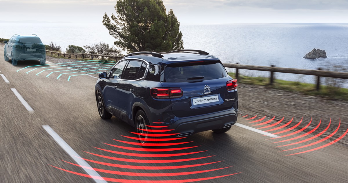 Por el lado del nuevo C5 Aircross estrena una reinterpretación de los chevrones que progresivamente recuperan su independencia, como nueva imagen de marca. Los mismos se alejan de los faros diurnos, marcando así una evolución respecto del resto de los modelos de la gama en los que los chevrones se prolongaban hasta los faros.