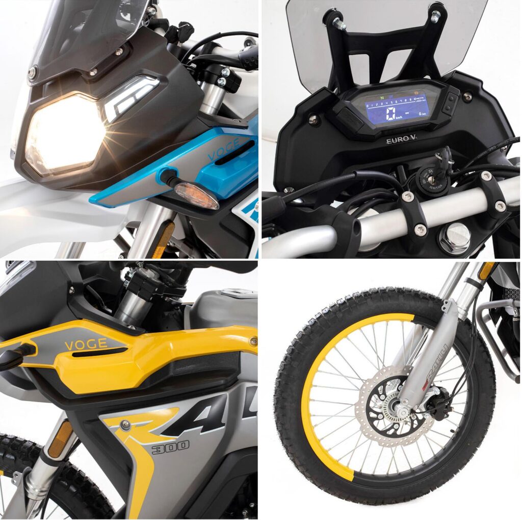 La nueva Voge 300 Rally se presenta en tres colores: Gris con amarillo, gris con negro y celeste y blanco. La garantía es de 24 meses o 24.000 kilómetros.