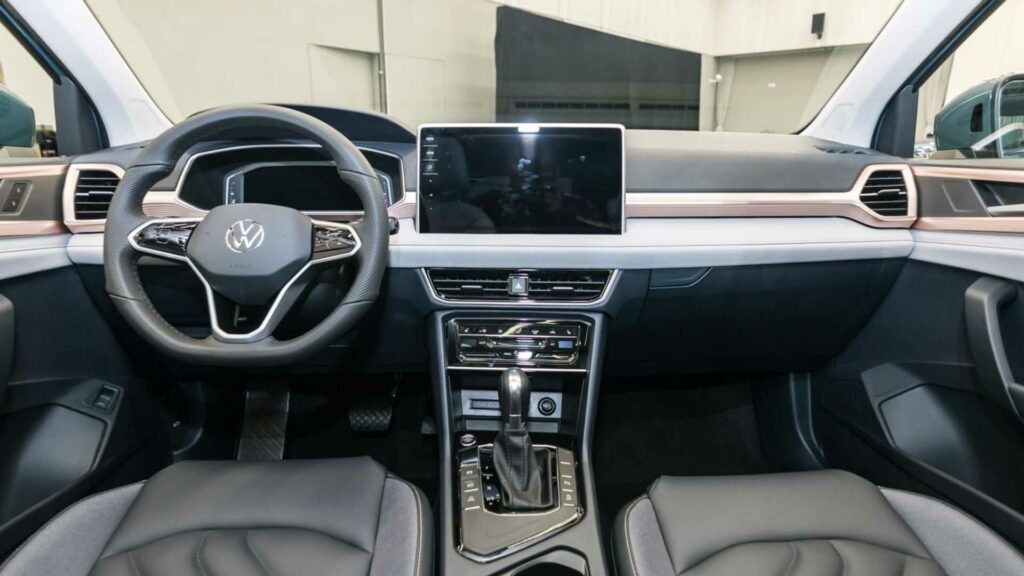Puertas adentro del futuro del Taos hay novedades. Volkswagen renovó la cabina del Tharu sumando nuevas salidas de aire, un centro multimedia de 12 pulgadas estilo flotante, una barra horizontal que sirve como delimitación de las salidas de aire y se conecta con la parte superior de las puertas.
