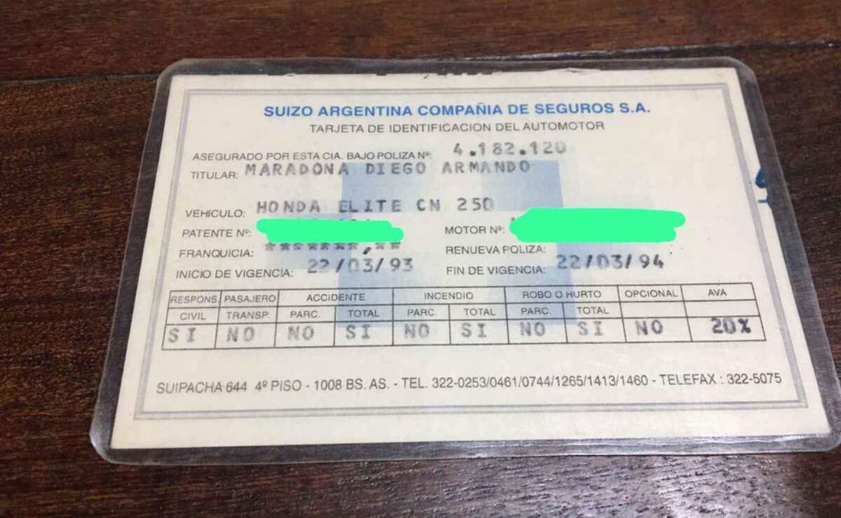 La tarjeta de identificación de la moto tiene fecha de inicio en marzo de 1993, año en el que Diego Maradona jugaba con el Newell’s Old Boys de Rosario, y cuyo patrocinador principal de ese momento era Yamaha.