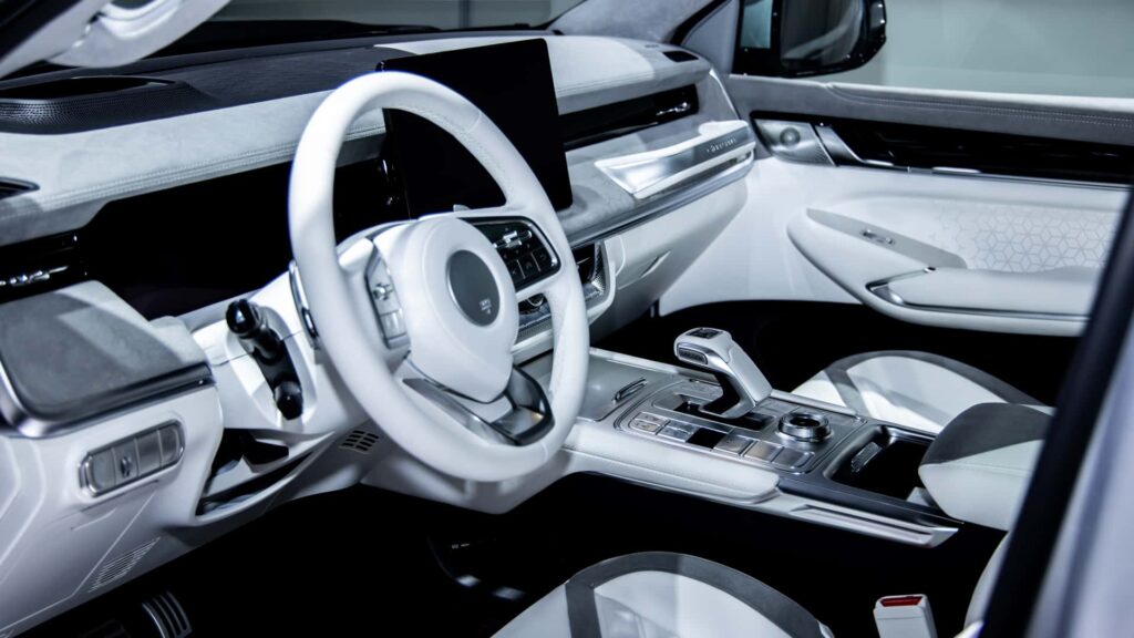 A nivel diseño la camioneta luce líneas afiladas, las que sirven para realzar aún más la robustez del descomunal vehículo. Puertas adentro se combina diseño, confort y tecnología. El modelo llevado al Salón de Shanghái contaba con blanco en el volante multifunción y en distintas partes del tablero, como la consola central y el salpicadero. El sistema multimedia se presenta con una enorme pantalla, ubicada en el centro, el panel de instrumentos también es digital.